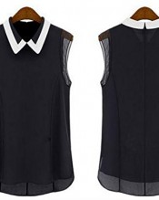 Bocideal New Arriviasl Black Women Summer Loose Casual Chiffon Sleeveless Vest Blouse Shirt Tops (M) (L)