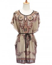 Bohemian Oversize Batwing Sleeve Top Blouse Womens Loose Off Shoulder Floral Print Shirt With Belt 32 Styles 5706 14-16