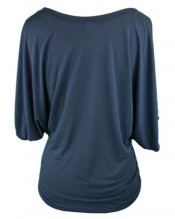 Colours Apparel Crystal Scoop Neck Dolman Sleeve Loose Fit Blouse Jersey Tee (Small, Navy)