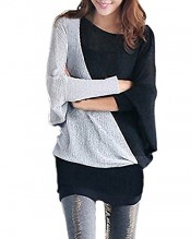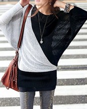Dawdyfu Women New Black White Contrast Batwing Tops Ladies Long Sleeve Elastic Waist Casual Blouse Shirt Jumper Mini Dress