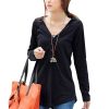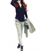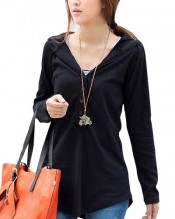 DJT 2014 New Fashion Design Women V-Neck Button Slim Hoodied Sweatshirt/Top/Tee/Shirt/Blouse/T-Shirt Black Size XL UK 14