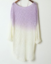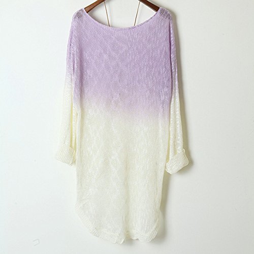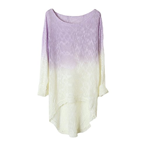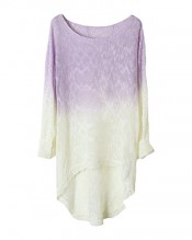 DJT Women Gradient Batwing Design Asymmetric Swallow Tail Casual Loose Tops Blouse Pullover Jumper Shirt Purple