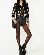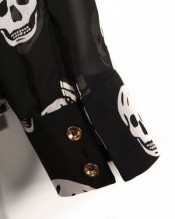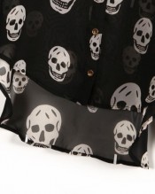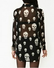 ELLAZHU Women Skulls See-through Long Sleeve Spring Chiffon Blouse Shirt CZ67 (M)
