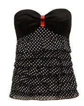ENVY BOUTIQUE WOMENS LADIES POLKA DOT RUFFLE STRAPLESS BOOB TUBE SUMMER SHIRT PARTY DRESS TOP BLACK 14