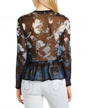 Beautifully designed and expertly tailored, this Nightfall Collarless Shirt in BLACK by chic French Connection is a must have. Made of luxurious sheer fabric, this stylish top features a collarless crew neck, long sleeves, and a wispy flattering fit throughout for an ethereal effect. Featuring metal hardware, a gorgeous multi coloured floral print throughout, and a dainty peplum hem. Finished off with button closure. A French Connection gem. Pair with Hudson jeans from Excel Clothing online for a great look.