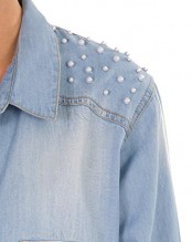 Hidden Fashion Womens Ladies Plus Size 18-30 Faded Denim Faux Pearl Embellished Shirt[BLUE_26]