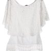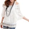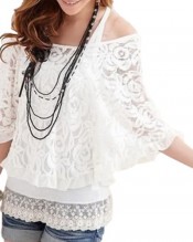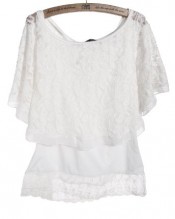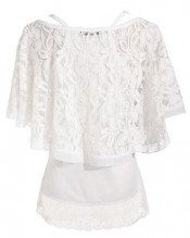 Hot Women Blouse 2 Pcs Lace Tops Off Shoulder Batwing T-Shirt + Tank Vest White