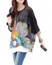 Imixcity Hot Sale Women’s Loose Bat Sleeve Bohemian Style Chiffon Casual T-Shirt Tops Blouse (XL, Black)