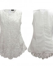 3. Features Elegant Doll Retro Slim Sleeveless Chiffon Lace Stitching Stretch Vest Blouse, Round Neck And With a Zipper in the Back