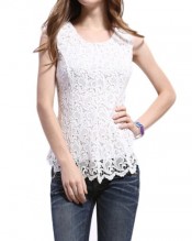 ISASSY Womens Ladies Sexy Hot Sheer Lace Sleeveless Embroidery Floral Lace Flared Peplum Crochet Top Tee T-Shirt Vest Blouse Shirt