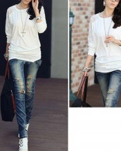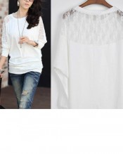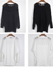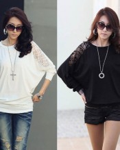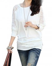 ISASSY Womens Ladies Stylish Sexy Hot Loose Batwing Dolman Lace Blouses Top T-shirt, Batwing Style, Long Sleeves, Loose Style