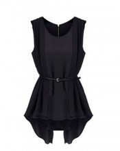 Jacentown® New Fashion Womens Casual Irregular Sleeveless Chiffon Blouse Tops Shirt (Black, M)