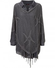 Warm, cosy and comfort itself. Our lightweight blouse with 3/4 sleeves and turn up cuffs comes with a crochet poncho. A great looking 2 piece set.