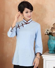 JTC Woman Tang Suit Chinese Style Cheongsam Summer Top Cloth (XXL, blue)