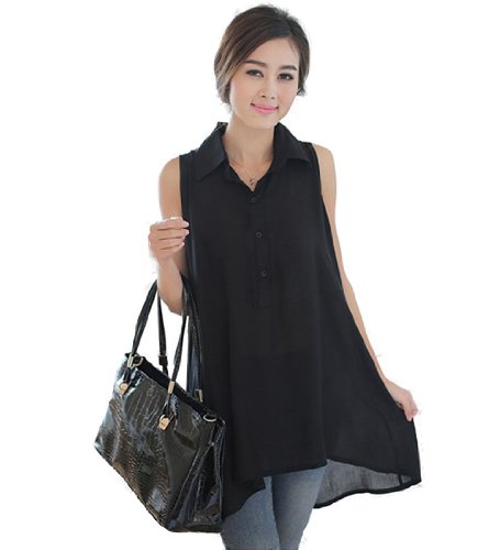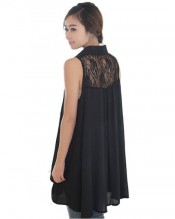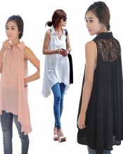 Korean Style Womens Girls Ladies Lapel Lace Sleeveless Loose Long Top Tee Cotton T-Shirt Vest Blouse Dress Shirts