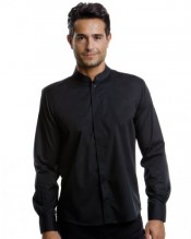 Kustom Kit Bargear Long Sleeve Mandarin Collar Shirt : Color – Black : Size – L