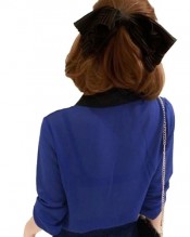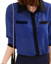 L Royal Blue Sexy Womens Long Sleeve Casual Sheer Chiffon Pocket Shirt Top Botton Down Blouse