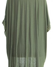 Ladies Womens Italian Lagenlook Quirky Sequin Trim Viscose Batwing Loose Baggy Tunic Top Blouse One Size (One Size, Khaki)