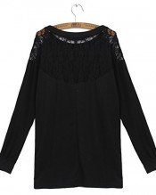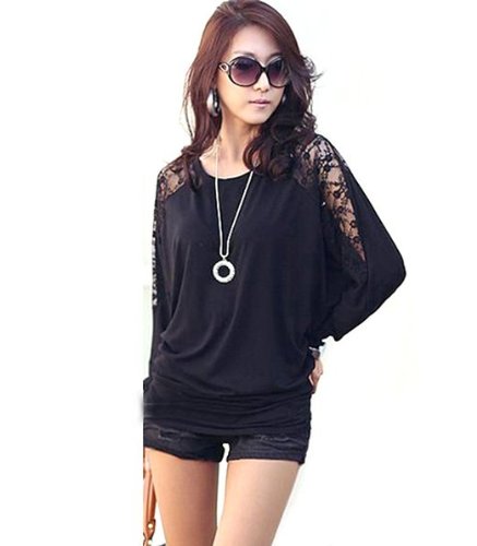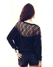 Lady’s Batwing Dolman Stylish Loose Blouse Long Sleeve Shirt Lace Tops T-Shirt Black