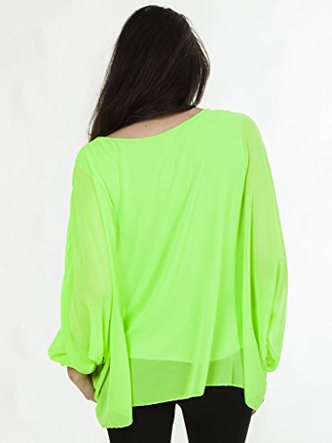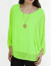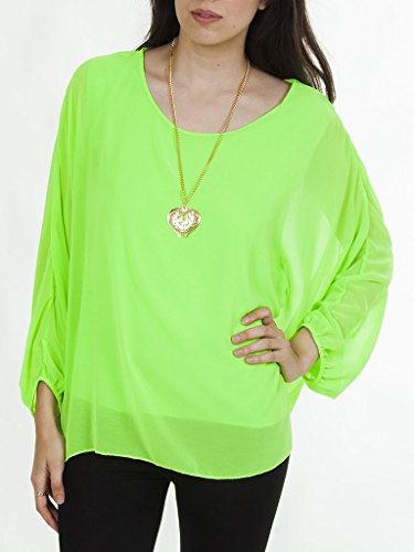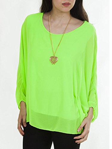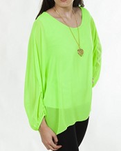 Love My Fashions Plain Crew Neck Long Sleeve Batwing Body Full Length Top With Complimentry Necklace Top – Lime Green – S M L XL 8 10 12 14