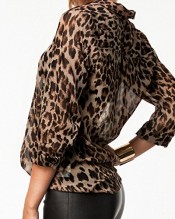 Moonar® 2014 Hot Sale Premier Women/Girl/Women’s Fashion/Leisure/Casual/Sexy European Leopard Lapel Long Sleeve Blouse Shirt for Spring/Summer/Autumn Chiffon + Polyester Buttons Natural Waistline (S)