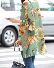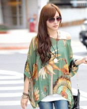 The item is a simple and fashion floral print style womens T-shirt blouse tops, which is made of durable soft chiffon material and features round collar and loose batwing three-quarter sleeves design for comfortable to wear in spring, summer and autumn. Wearing the casual chiffon blouse in some occasions, you will immediately become the focus and attract some peoples attentions.