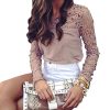 New Fashion Women’s Sexy Long Sleeve Chiffon Lace Embroidered Slim Blouse T-shirt Tops (L, As picture)