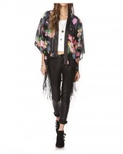 New Vintage Retro Women Ethnic Floral Tassels Chiffon Shirt Loose Kimono Cardigan Jacket Coat