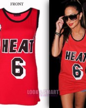 NEW WOMENS SLEEVELESS JERSEY MIAMI HEAT 6 RED BASKETBALL VEST TOP SIZE UK 8-14 (ML (UK 12-14), RED)