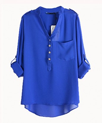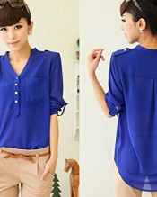 niceeshop(TM) Women V Neck Chiffon Elegant Casual Chiffon Shirt Blouse,Royal Blue,XL