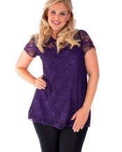 Nouvelle Deep Lace Lined Tunic Purple Size 18