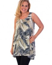 Nouvelle Lace Feather Print Sleeveless Tunic Stone Size 18