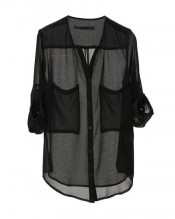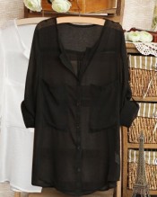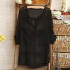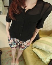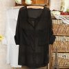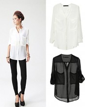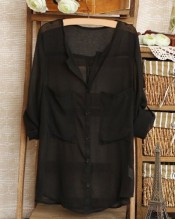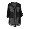 Outdoortips Chiffon Blouse Sheer Top Casual Foldable Sleeve Loose Thin T-Shirt (L, Black)