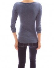 PattyBoutik Cotton Blend Textured V Neck Long Sleeve Stretch Fitted Tee (Blue 12)