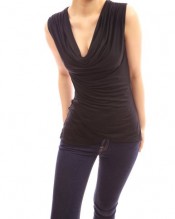 PattyBoutik Cowl Neck Ruched Sleeveless Faux Wrap Pullover Casual Cami Tank Top (Black 16)