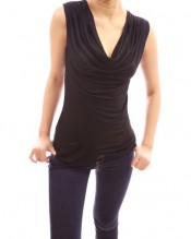Cowl Neck Ruched Sleeveless Faux Wrap Pullover Casual Cami Tank Top.