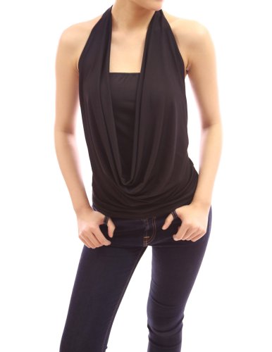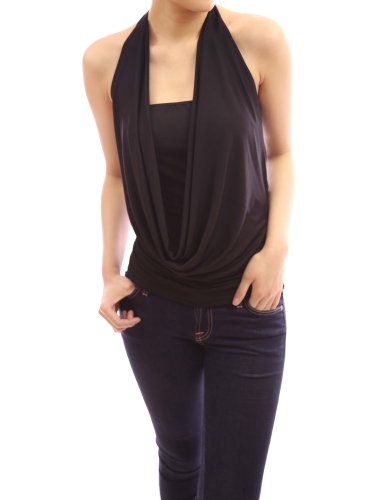 PattyBoutik Cowl Neck Twist Back Halter 2 pcs Party Cami Top (Black 14)