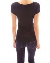 PattyBoutik Cross-front V Neck Ruched Fully Lined Cap Sleeve Mesh Blouse Top (Black 12)