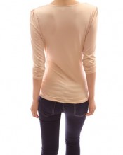 PattyBoutik Crossover Faux Wrap Long Sleeve Pullover Blouse Top (Beige 12)