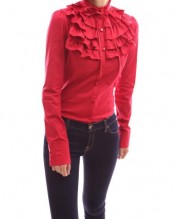 Ruffle Flounce Stand Collar Long Sleeved Blouse Tops.