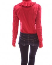PattyBoutik Ruffle Flounce Stand Collar Long Sleeved Blouse Tops (Red 12)