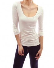 PattyBoutik Scoop Neck Lace Up Back Long Sleeve Stretch Blouse Tee Top (Ivory 12)