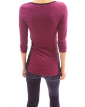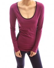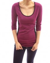 Cotton Color Block Scoop Neck Long Sleeve Stretch Blouse Top.