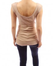 PattyBoutik Scoop Neck Sleeveless Ruched Sides Tank Top (Light Brown 8/10)