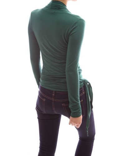 PattyBoutik Sexy Convertible Long Sleeve Casual Wrap Knit Top (Green 14)