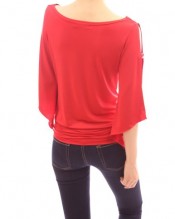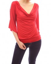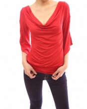 PattyBoutik Sexy Cowl Neck Cut Out Asym Sleeve Casual Blouse Top (Red 12)