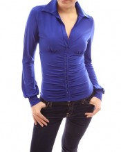 Smart V Neck Ruched Long Sleeve Blouse Top. Pullover blouse top embellished with metal buttonhooks.