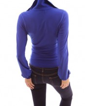 PattyBoutik Smart V Neck Ruched Long Sleeve Blouse Top (Blue 8/10)