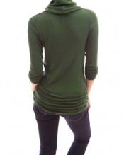 PattyBoutik Soft Comfy Cowl Neck Long Sleeve Stretch Causal Blouse Tunic Knit Top (Green 14)