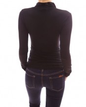 PattyBoutik Unique Button Embellished Long Sleeve Party Blouse Top (Black 14)